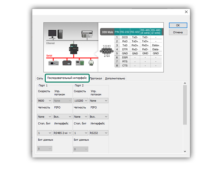 - Назначения контактов (распиновки) последовательных портов на устройствах MGate 3000