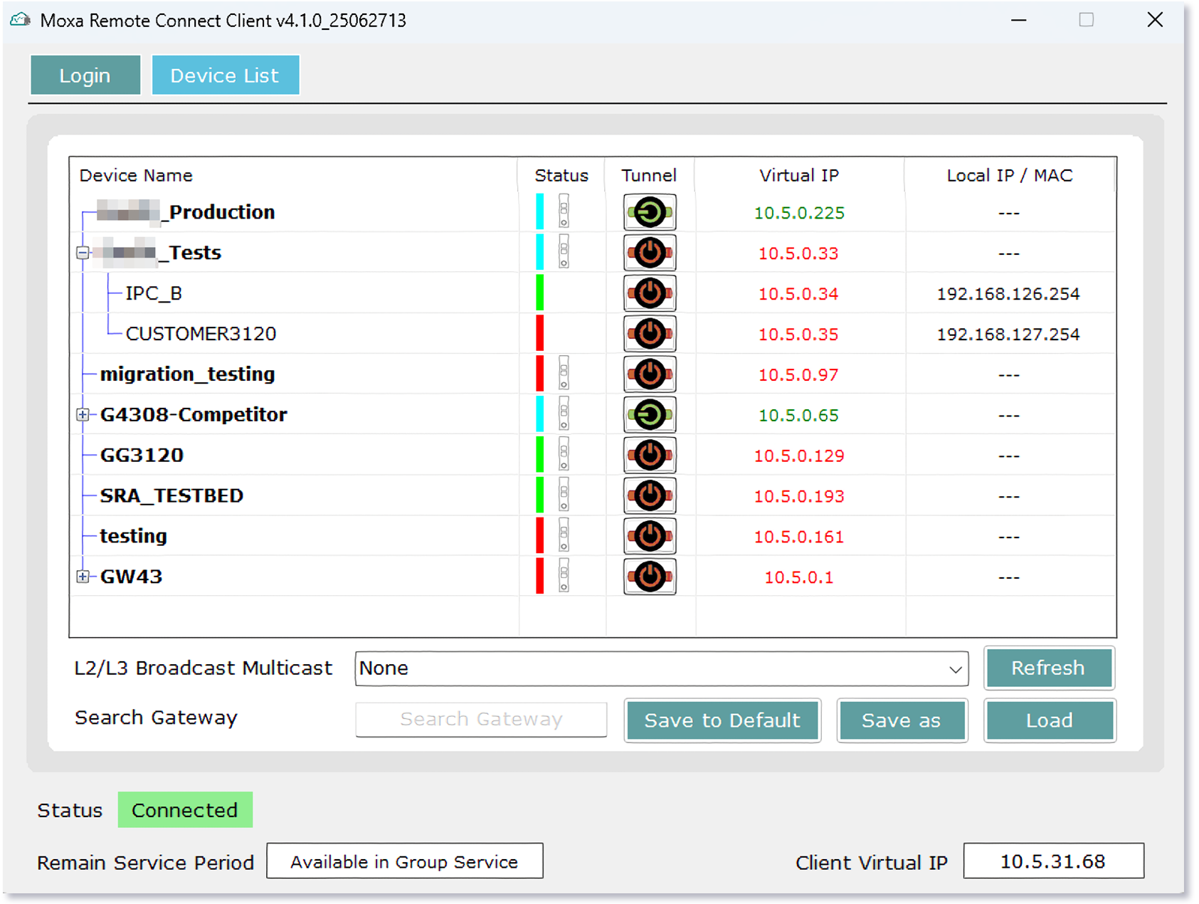 С помощью клиента MRC, установленного на вашем ПК, вы можете получить доступ к маршрутизаторам серии OnCell G4300-LTE4 и подключённым к ним LAN-устройствам. Это обеспечивает быстрый поиск неиправностей и возможность диагностики в режиме реального времени.