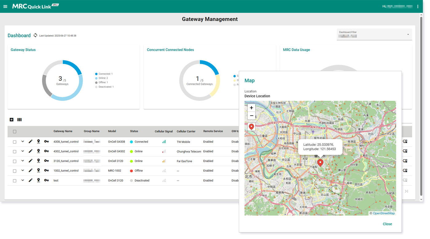 С помощью облачной платформы MRC можно легко визуализировать состояние и работоспособность всех установленных сотовых маршрутизаторов и подключённых устройств.