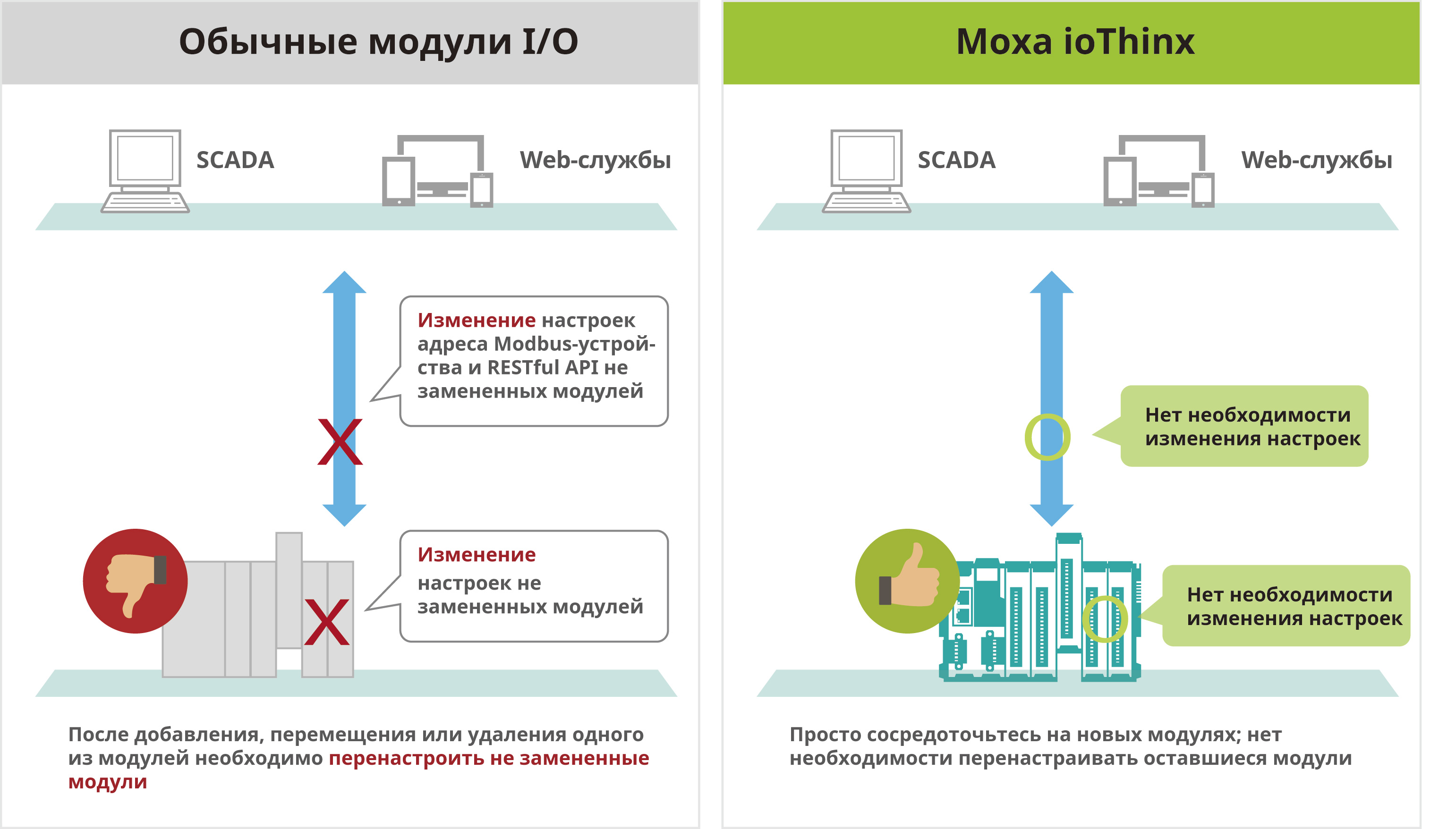 Замена модулей ввода/вывода без изменения настроек устройств и SCADA-системы