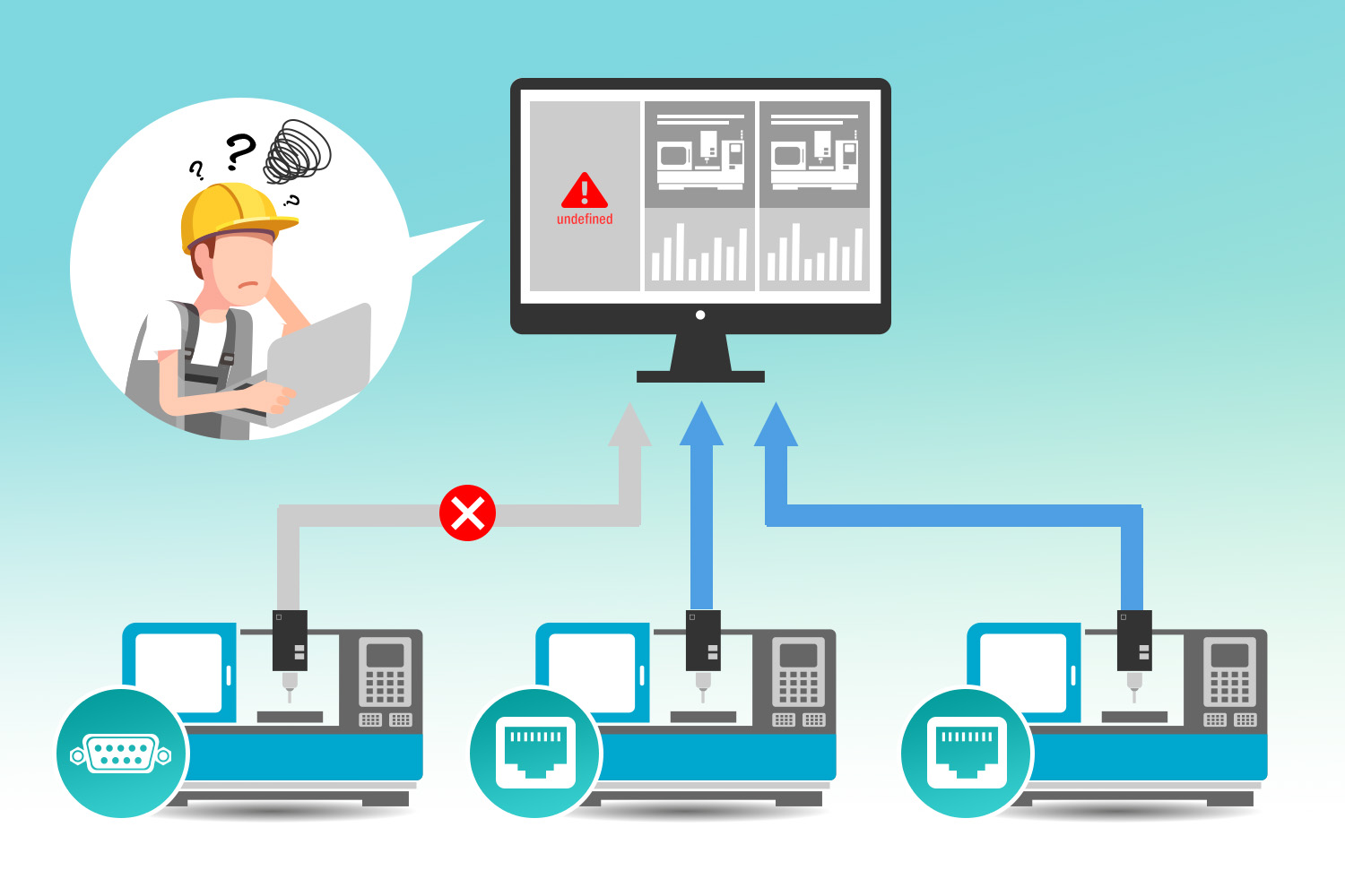 Несмотря на то, что современное оборудование способно предоставить ценную информацию, оно не делает мониторинг в цехе простым. Разные устройства разных производителей, использующих собственный набор протоколов, усложняют операции по обработке данных, поскольку выходные данные с этих устройств не всегда совместимы с единственной программной платформой, что делает анализ данных сверхсложной задачей. Следовательно, решение проблемы совместимости устройств и доступности данных ложится на плечи системных интеграторов.